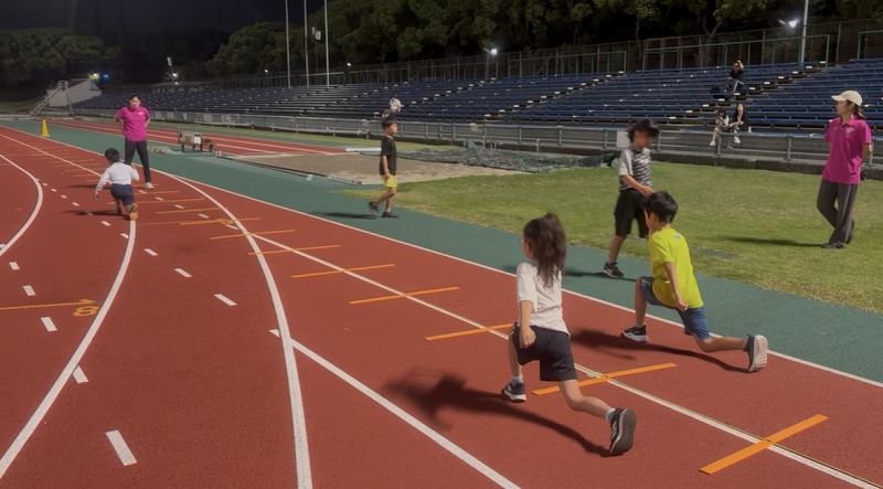 低学年クラス ミニハードル走をしているところです。 ハードルの上で足を入れ替える意識をして走りました。 リズムよく走れるようになってきました。