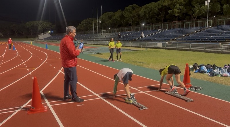 低学年クラス クラウチングスタート練習をしているところです。 力強くスタートできるようになってきました。