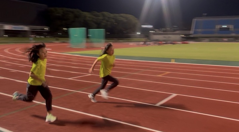 低学年クラス 50mの計測をしているところです。 最高記録は9.0秒でした。