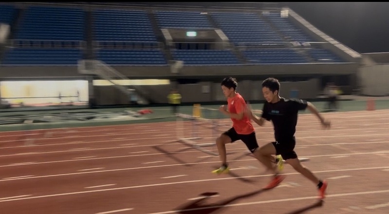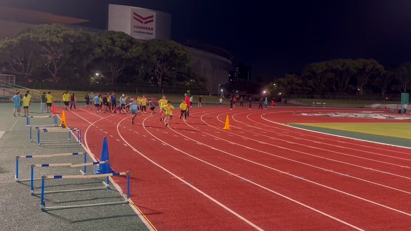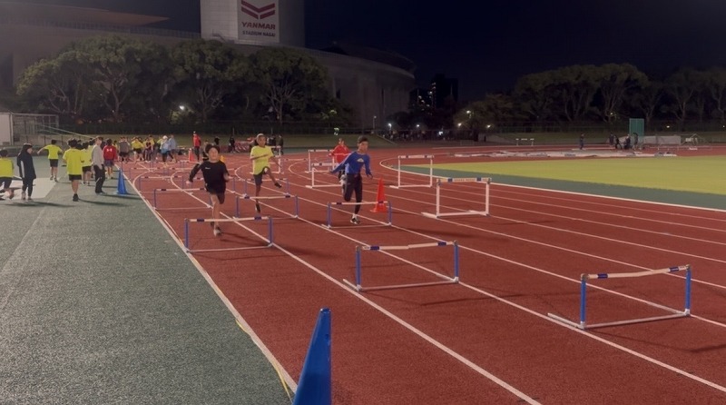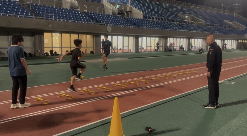 中学生クラス スプリントドリルをしているところです。 ミニハードルに惑わされてしまい苦戦していました。