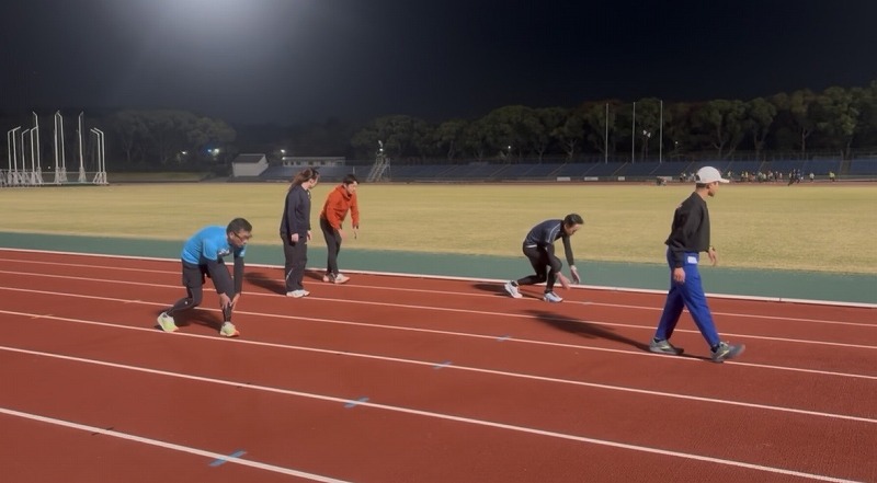 準備運動(長距離) 動的ストレッチをしているところです。