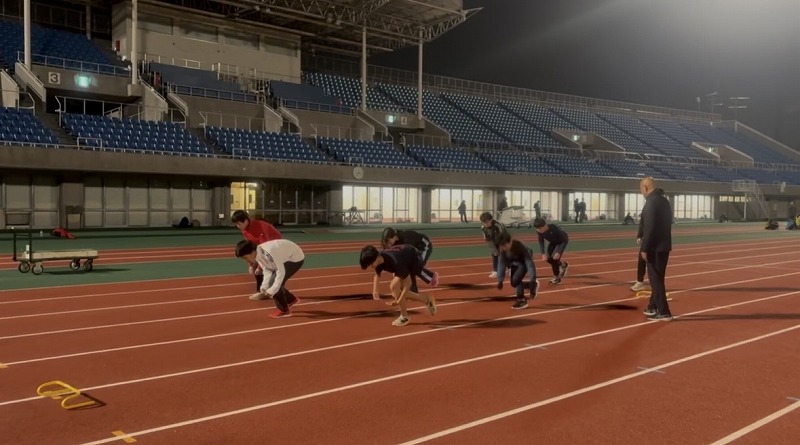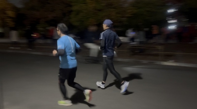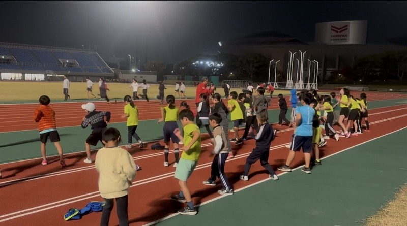 長距離クラス 外周走をしているところです。 今日も距離を踏みながらのスピード強化に取り組みました。