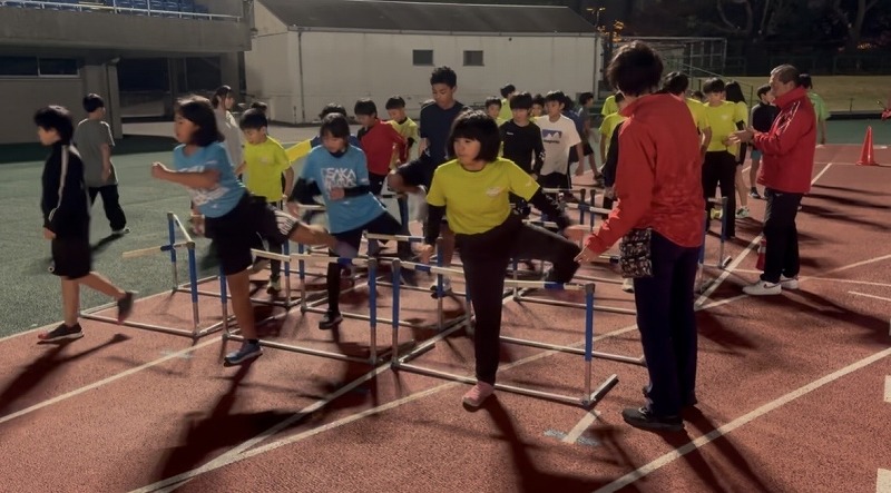 高学年クラス ハードル歩行ドリルをしているところです。 素早く動かすことを意識しました。