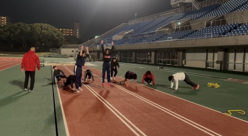 中学生クラス バービージャンプをしているところです。 今日はサーキット形式で色々な補強運動に取り組みました。