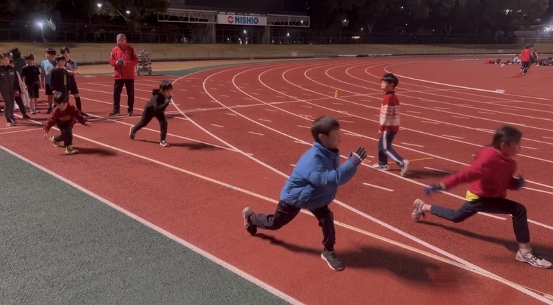 高学年クラス ダッシュをしているところです。 クラウチングスタートからのダッシュをしました。 スムーズに加速できるようになってきました!