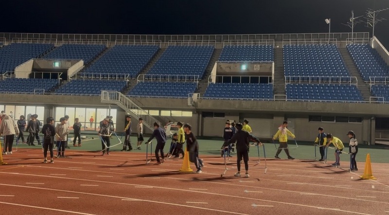 低学年クラス ジャベボール投げをしているところです。 サイドステップから投げる練習をしました。