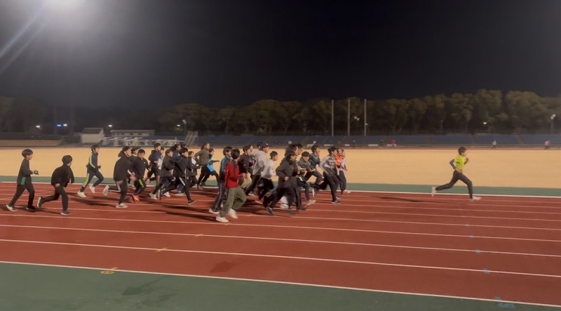 長距離クラス インターバル走をしているところです。 各自ペース設定をおこない走りました。