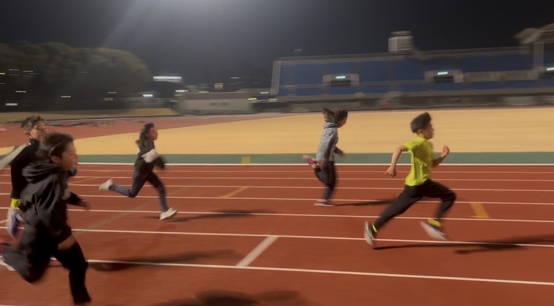 中学生クラス スピードアップ走をしているところです。 記録会に向けて、スピード練習に取り組み始めました。