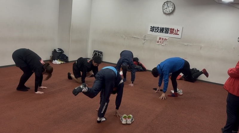中学生クラス 補強運動をしているところです。 ポイントを確認し、丁寧に取り組みました。