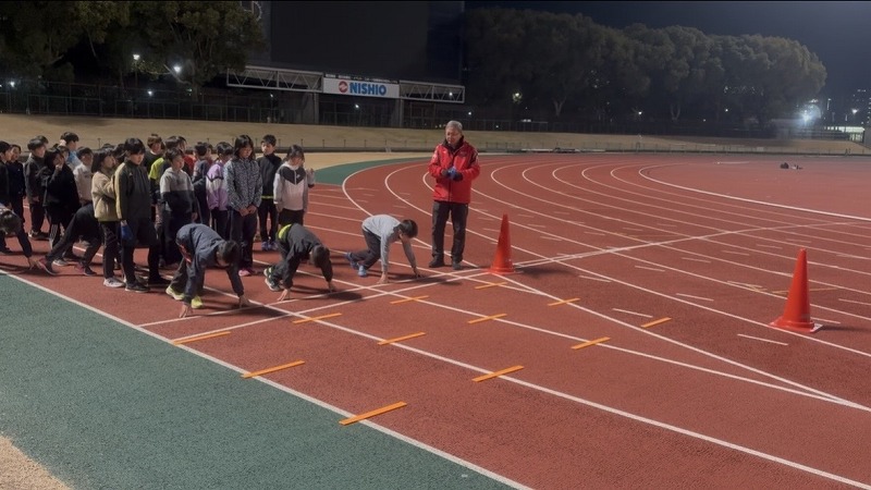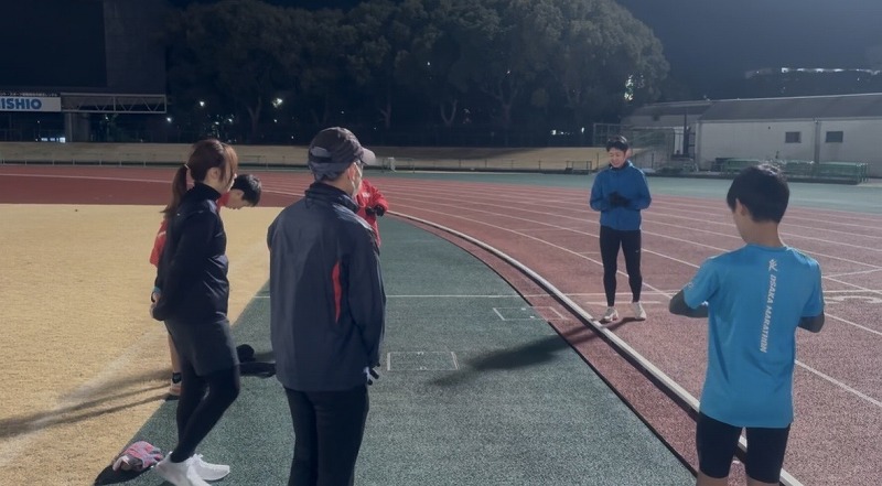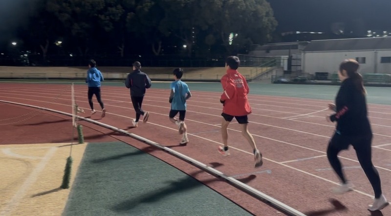 長距離クラス ペース走をしているところです。 目標は10000mでした。 ほとんどの方が完走できました。