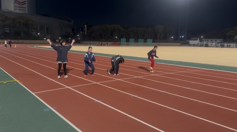 低学年クラス クラウチングスタートの練習をしているところです。 勢いよくスタートできるように練習しました。