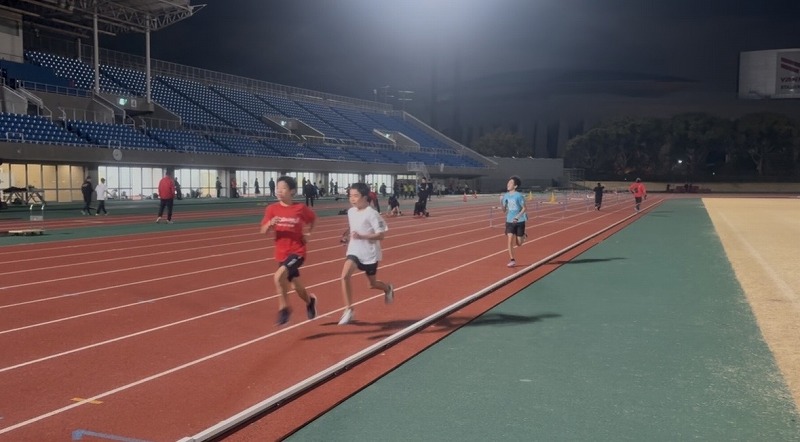 長距離クラス インターバル走しているところです。 設定タイムをクリアできるように最後まで諦めずに走りきりました。