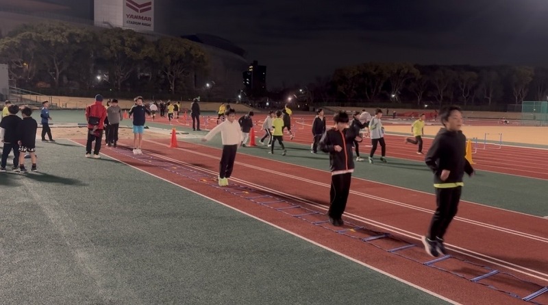 中学生クラス ミニハードルドリルをしているところです。 姿勢がとても安定してきました。