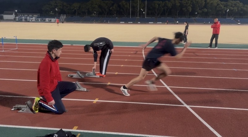 中学生クラス スタート練習をしているところです。 スムーズにスタートできるように試行錯誤しながら各自練習に取り組みました。